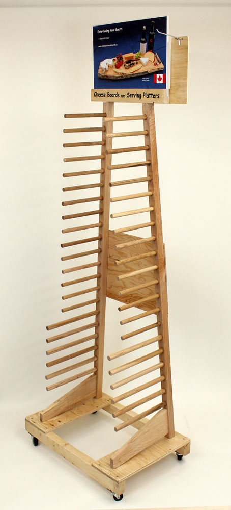 Large Floor Stand with cheeseboards Large Floor Stand with Signage Large Floor Stand with Cheeseboards – right angle Signage for Cheeseboard Display Countertop display stand with cheeseboards Countertop display stand Back